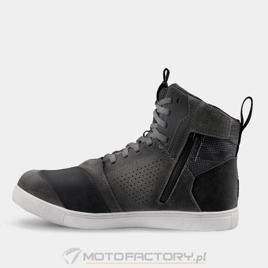 Nowa generacja butów motocyklowych SHIMA REBEL 2.0 VENTED doskonale łączy miejski styl z wyjątkową wentylacją. Trampki zapewniają wysoką przewiewność dzięki obszernej perforacji punktowej oraz perforowanemu językowi wykonanemu z tkaniny mesh. W kwestii bezpieczeństwa model oferuje solidne wzmocnienia na pięcie, kostce i palcach oraz poprzecznie wzmacnianą gumową podeszwę, zapewniającą stabilność i ochronę w każdych warunkach drogowych. Wnętrze buta wyposażone jest dodatkowo w polipropylenową wkładkę wzmacniającą. Buty posiadają antypoślizgowe przetłoczenia do zmiany biegów umieszczone na nowoczesnej nakładce wykonanej z oddzielnego kawałka materiału. Specjalna konstrukcja dostosowana do pozycji stóp podczas jazdy motocyklem gwarantuje stabilność i komfort nawet podczas wielogodzinnych tras. Osłonka sznurowadeł, duże panele odblaskowe oraz możliwość regulacji sznurowadeł sprawiają, że buty REBEL 2.0 VENTED są funkcjonalne i praktyczne. Dostępne są w klasycznej czerni i praktycznej szarości oraz w szerokiej rozmiarówce od 41 do 48, trampki są idealnym wyborem dla wszystkich motocyklistów, którzy cenią sobie doskonałą wentylację i komfort na motocyklu nawet w najbardziej upalne dni.