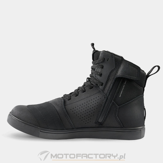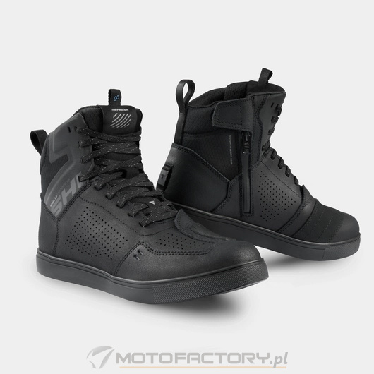 Wodoodporne trampki REBEL WP to połączenie bezpieczeństwa i miejskiego stylu. Ich ergonomiczna gumowa podeszwa została poprzecznie wzmocniona. Dodatkowo wzmocniono także pięty, palce i kostki. Gwarantują one wysoki poziom bezpieczeństwa. Buty zostały również wyposażone w protektor kostki SAP wykonany z TPU - dla lepszej stabilności i pewności ruchów. Wykonane ze skóry naturalnej trampki posiadają perforowane przestrzenie dla kontroli cyrkulacji powietrza. Mikroporowata membrana wodoodporna NextDry utrzyma Twoje stopy suche nawet w deszczowe dni. Dla dostarczenia najwyższego standardu komfortu trampki zostały wyposażone w pasek do naciągania i zamek błyskawiczny z boku, dzięki czemu można je sprawnie założyć lub zdjąć. Przetłoczenia na noskach ułatwiają obsługę dźwigni zmiany biegów dzięki antypoślizgowym właściwościom, a specjalna pochylona konstrukcja imituje pozycję stóp podczas jazdy motocyklem. Inspirowane stylem ulicznym będą odpowiednie również po zejściu z motocykla. Trampki REBEL WP wyposażono w dwie wersje kolorystyczne sznurowadeł (oba dostępne w zestawie), dzięki czemu możesz wybrać swój styl w zależności od potrzeb.