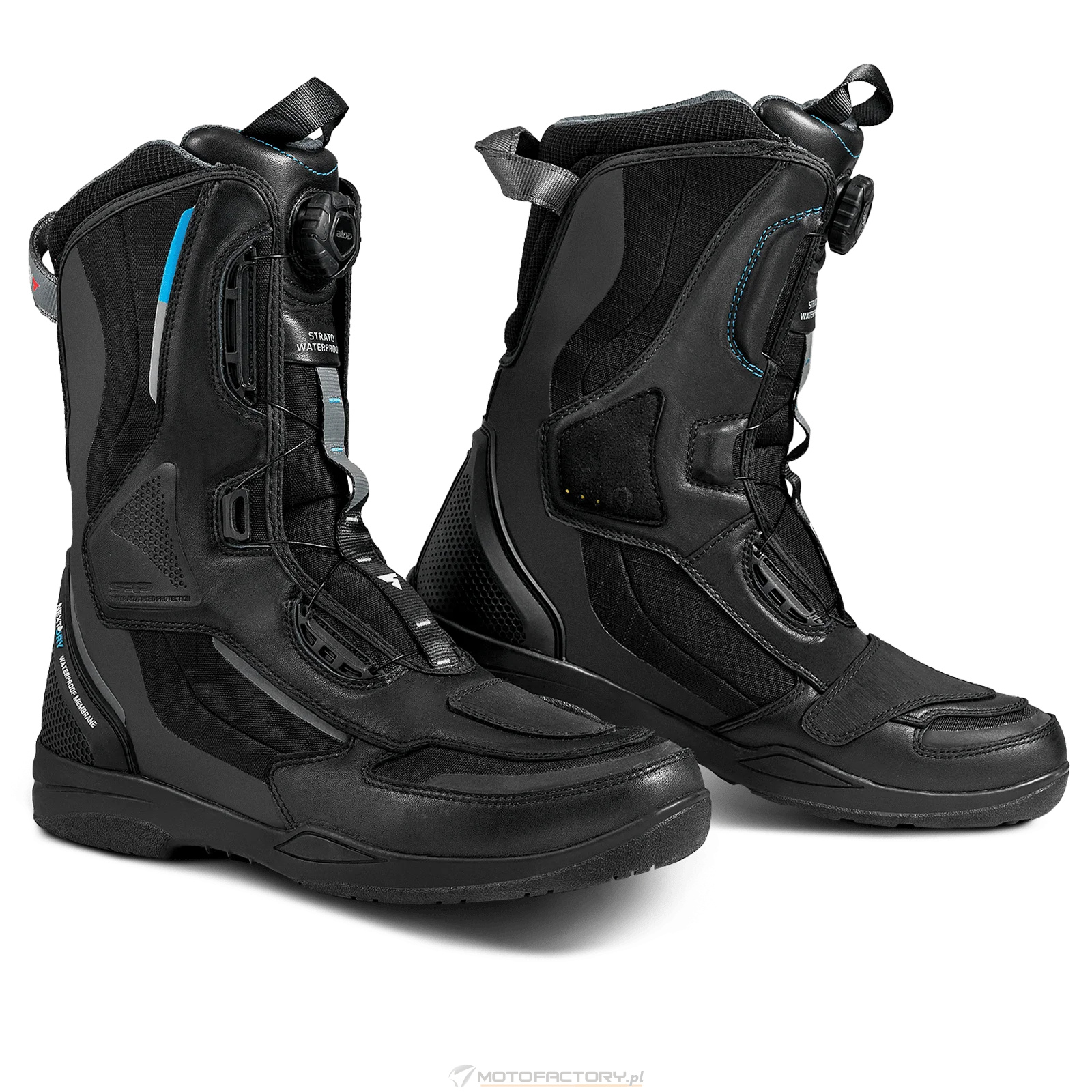 Sprawdzony model dobrze wentylowanych butów STRATO wraz z nowym sezonem zyskał nowe parametry. Został wyposażony w nową tkaninę zewnętrzną o właściwościach hydrofbowych i w ten sposób powstały buty STRATO WP. Dzięki podszewce posiadającej membranę NextDry™ nie musisz się martwić, gdy w trakcie motocyklowej przejażdżki zaskoczy Cię deszcz. Są to lekkie, średniej wysokości buty przeznaczone do codziennego użytku w mieście i na letnie wycieczki w bardziej odległe miejsca. Dopracowana konstrukcja buta posiada wzmocnienia w strategicznych miejscach, aby zapewnić odpowiednie bezpieczeństwo i amortyzację. Wychodząc naprzeciw wymaganiom estetycznym, funkcjonalnym i komfortowym, STRATO WP wyposażono w pasek do naciągania i system sznurowania pokrętłem ATOP, który można łatwo obsługiwać jedną ręką nawet w rękawicy. Znalezienie idealnego dopasowania będzie dziecinnie proste. Co więcej, buty są świetnie przygotowane do nocnych przejażdżek. A to za sprawą dużej powierzchni paneli odblaskowych, które w rzeczywistości wyglądają jak część designu buta. Buty STRATO WP stanowią idealne połączenie ochrony, wytrzymałości i komfortu.
