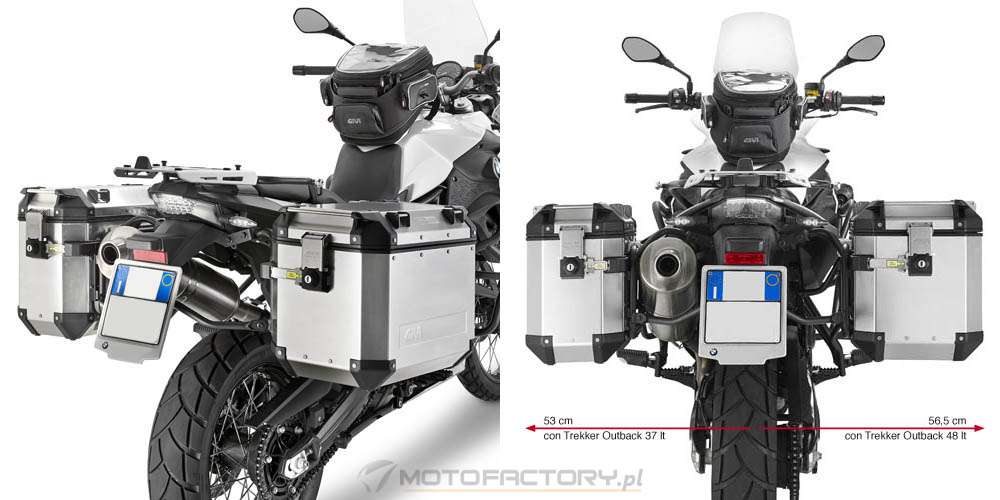 - wyłącznie kufry aluminiowe Trekker Outback - Elementy montażowe przygotowane przez GIVI (tuleje, śruby, podkładki)