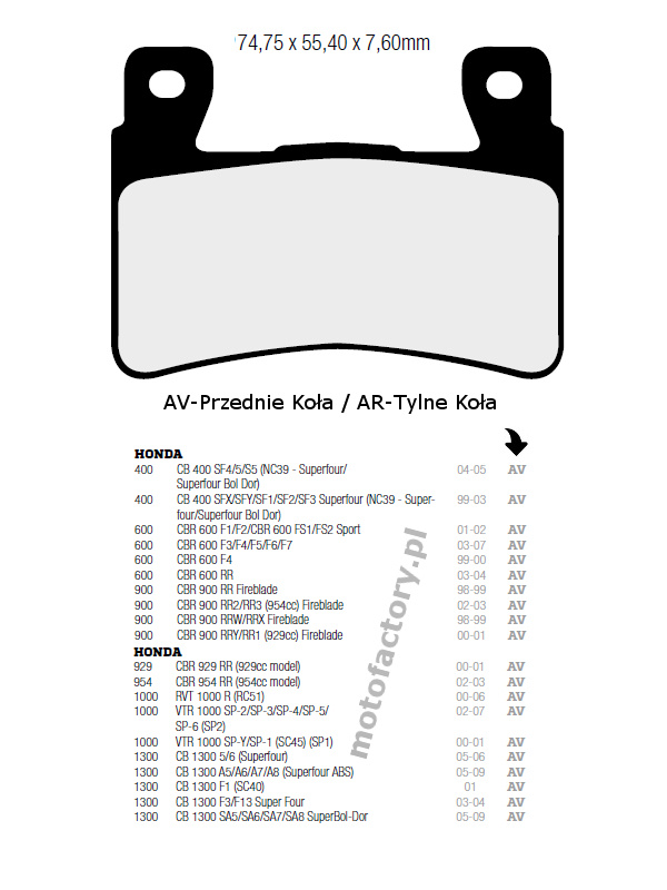 Aby precyzyjnie dobrać klocki hamulcowe do danego motocykla/skutera, prosimy o kontakt, bądź skorzystanie z