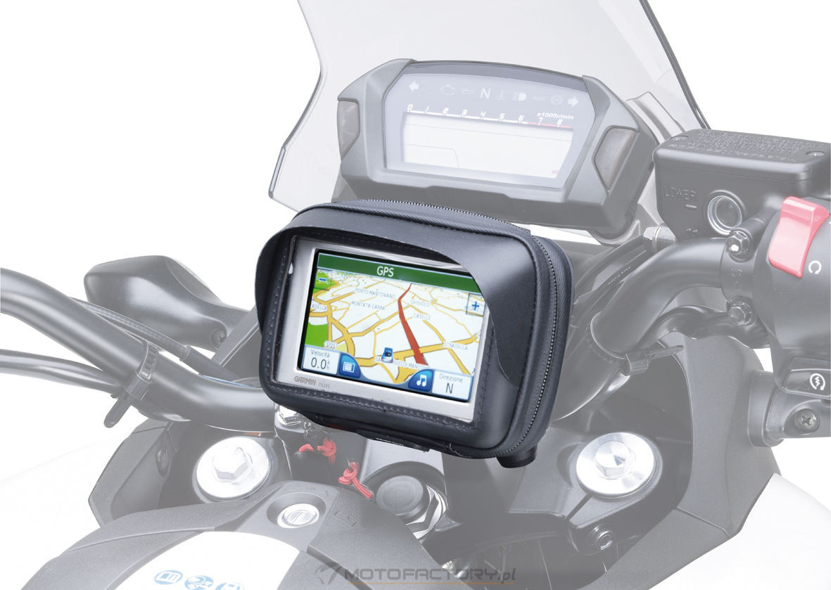 Uniwersalny uchwyt zakładany na kierownice, jego trzon przed dokręceniem posiada dużą tolerancje w ustawieniu, dzięki czemu uchwyt można montować w dowolnym miejscu na kierownicy