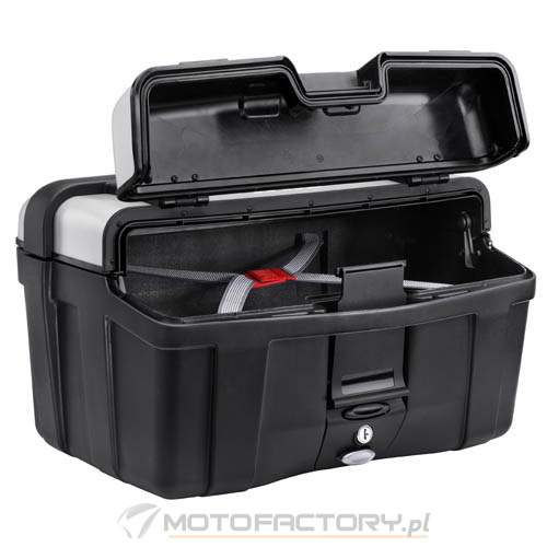 Dodatkowo kufer został wyposażony w możliwość przełączania otwarcia kufra, gdy kufer jest zamontowany w pionie nie musimy otwierać całego wieka, wystarczy 1/3. Otrzymujemy w ten sposób doskonały dostęp do bagażu w trakcie podróży.