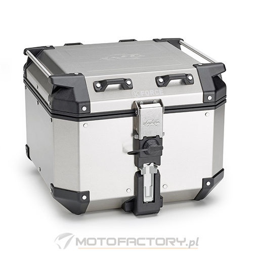 Kufer w pełni wykonany z aluminium, dzięki wyprowadzeniu potężnego zamka na zewnątrz kufra, oraz kubaturze pełnego prostokąta otrzymujemy bardzo pojemy i funkcjonalny kufer przy zachowaniu stosunkowo niedużych rozmiarów.