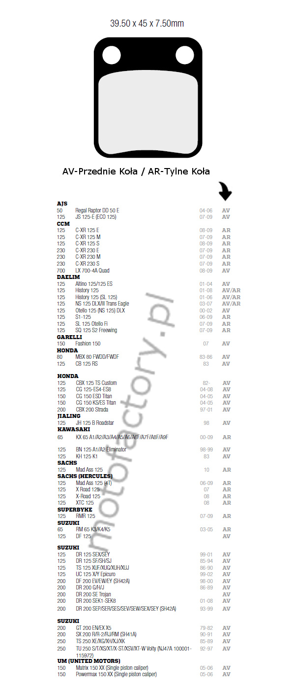 Aby precyzyjnie dobrać klocki hamulcowe do danego motocykla/skutera, prosimy o kontakt, bądź skorzystanie z KATALOGU LUCAS