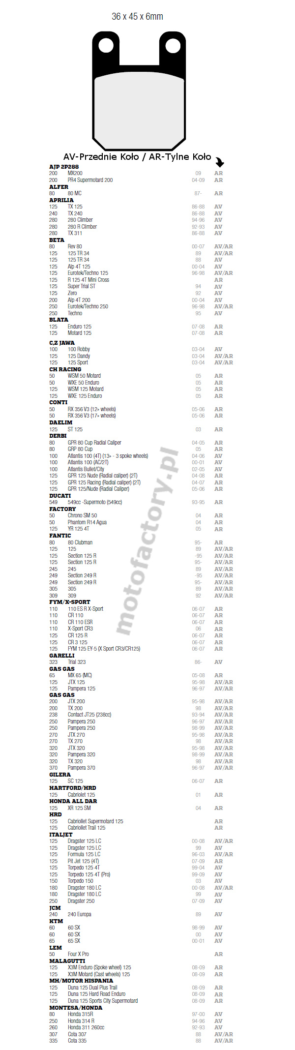 | Motocykle Enduro | STD , LF , SV , SH , SI |