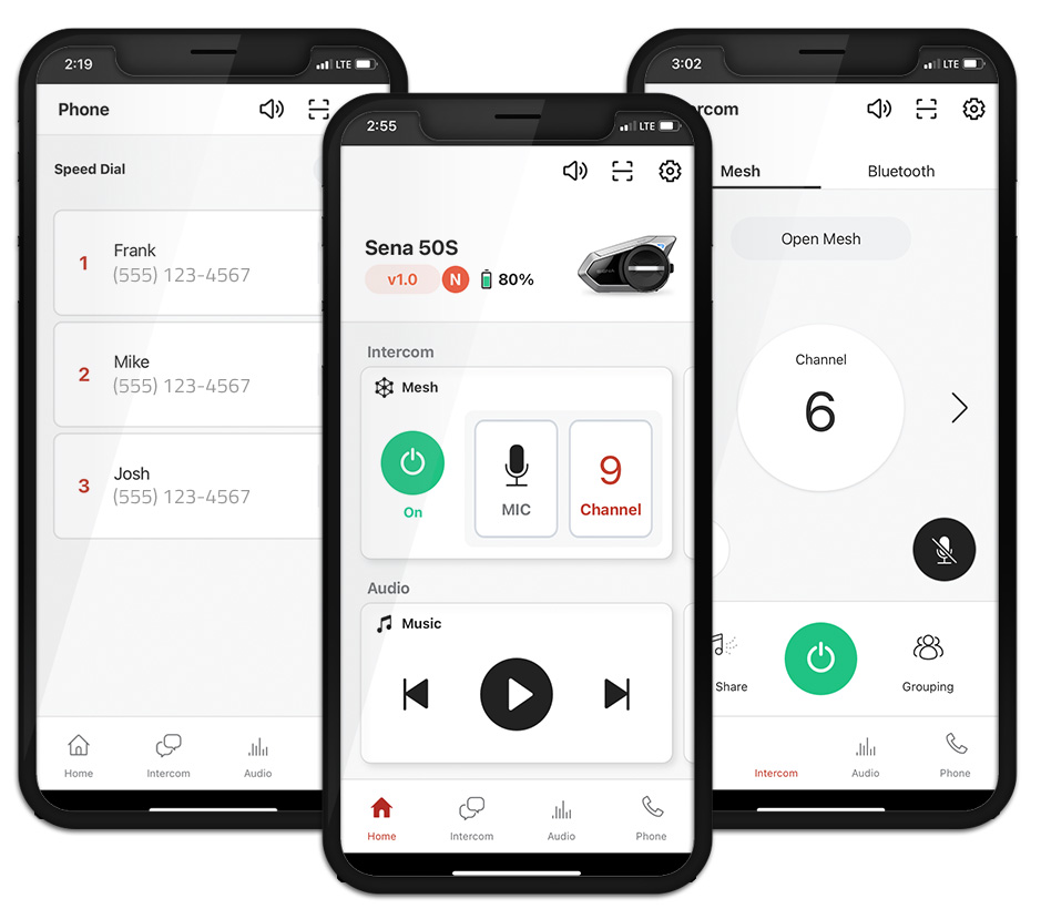 Dedykowana aplikacja na smartfony pozwala kontrolować ustawienia interkomu w prosty i przyjemny sposób. Pobierz aplikację Sena Motorcycles App, aby zdalnie zarządzać ustawieniami kanałów siatki MESH, sprawdzić stan naładowania baterii i zmienić aktualnie odtwarzaną piosenkę.