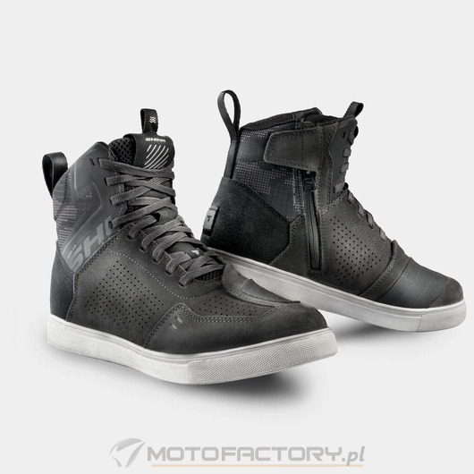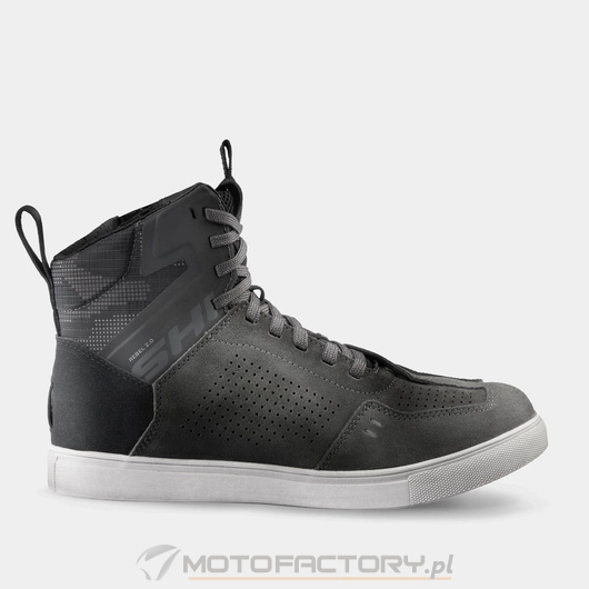 Nowa generacja butów motocyklowych SHIMA REBEL 2.0 VENTED doskonale łączy miejski styl z wyjątkową wentylacją. Trampki zapewniają wysoką przewiewność dzięki obszernej perforacji punktowej oraz perforowanemu językowi wykonanemu z tkaniny mesh. W kwestii bezpieczeństwa model oferuje solidne wzmocnienia na pięcie, kostce i palcach oraz poprzecznie wzmacnianą gumową podeszwę, zapewniającą stabilność i ochronę w każdych warunkach drogowych. Wnętrze buta wyposażone jest dodatkowo w polipropylenową wkładkę wzmacniającą. Buty posiadają antypoślizgowe przetłoczenia do zmiany biegów umieszczone na nowoczesnej nakładce wykonanej z oddzielnego kawałka materiału. Specjalna konstrukcja dostosowana do pozycji stóp podczas jazdy motocyklem gwarantuje stabilność i komfort nawet podczas wielogodzinnych tras. Osłonka sznurowadeł, duże panele odblaskowe oraz możliwość regulacji sznurowadeł sprawiają, że buty REBEL 2.0 VENTED są funkcjonalne i praktyczne. Dostępne są w klasycznej czerni i praktycznej szarości oraz w szerokiej rozmiarówce od 41 do 48, trampki są idealnym wyborem dla wszystkich motocyklistów, którzy cenią sobie doskonałą wentylację i komfort na motocyklu nawet w najbardziej upalne dni.