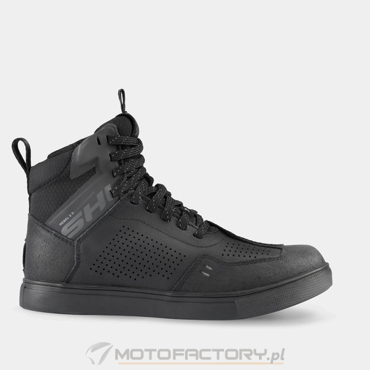 Wodoodporne trampki REBEL WP to połączenie bezpieczeństwa i miejskiego stylu. Ich ergonomiczna gumowa podeszwa została poprzecznie wzmocniona. Dodatkowo wzmocniono także pięty, palce i kostki. Gwarantują one wysoki poziom bezpieczeństwa. Buty zostały również wyposażone w protektor kostki SAP wykonany z TPU - dla lepszej stabilności i pewności ruchów. Wykonane ze skóry naturalnej trampki posiadają perforowane przestrzenie dla kontroli cyrkulacji powietrza. Mikroporowata membrana wodoodporna NextDry utrzyma Twoje stopy suche nawet w deszczowe dni. Dla dostarczenia najwyższego standardu komfortu trampki zostały wyposażone w pasek do naciągania i zamek błyskawiczny z boku, dzięki czemu można je sprawnie założyć lub zdjąć. Przetłoczenia na noskach ułatwiają obsługę dźwigni zmiany biegów dzięki antypoślizgowym właściwościom, a specjalna pochylona konstrukcja imituje pozycję stóp podczas jazdy motocyklem. Inspirowane stylem ulicznym będą odpowiednie również po zejściu z motocykla. Trampki REBEL WP wyposażono w dwie wersje kolorystyczne sznurowadeł (oba dostępne w zestawie), dzięki czemu możesz wybrać swój styl w zależności od potrzeb.