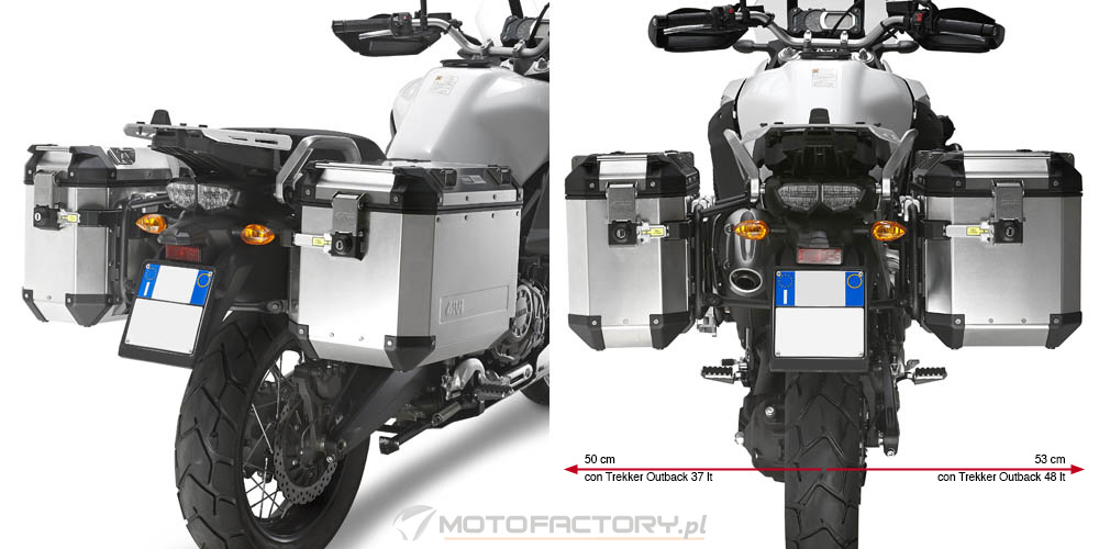 - wyłącznie kufry aluminiowe Trekker Outback - Elementy montażowe przygotowane przez GIVI (tuleje, śruby, podkładki)