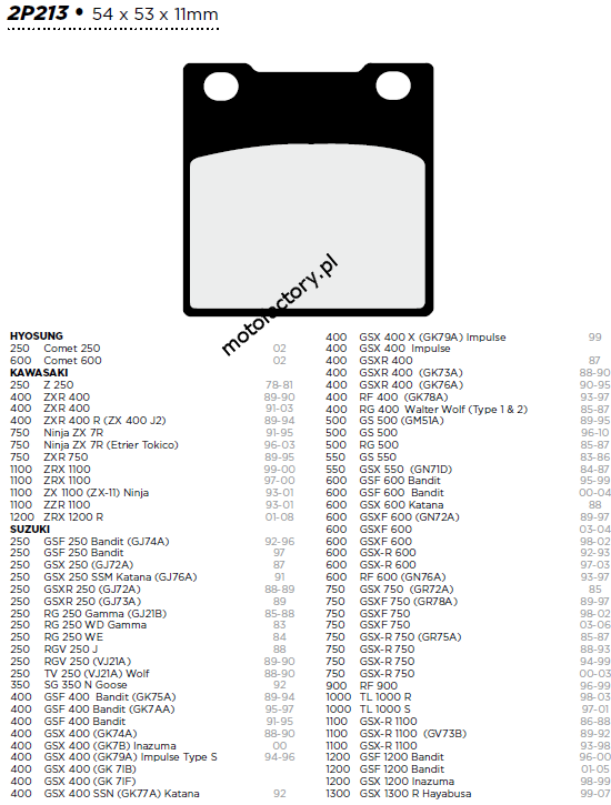 Aby precyzyjnie dobrać klocki hamulcowe do danego motocykla prosimy o kontakt,
