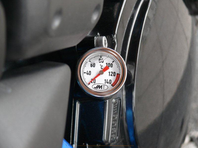 Średnica wskaźnika (zegara) 35,2mm. Wskaźnik temperatury oleju przystosowany jest do umieszczenia go w miejscu bagnetu do pomiaru poziomu oleju. Jest to doskonałe rozwiązanie dla tych, którzy w swoich motocyklach nie posiadają innych wskaźników temperatury umieszczonych np. w konsoli.